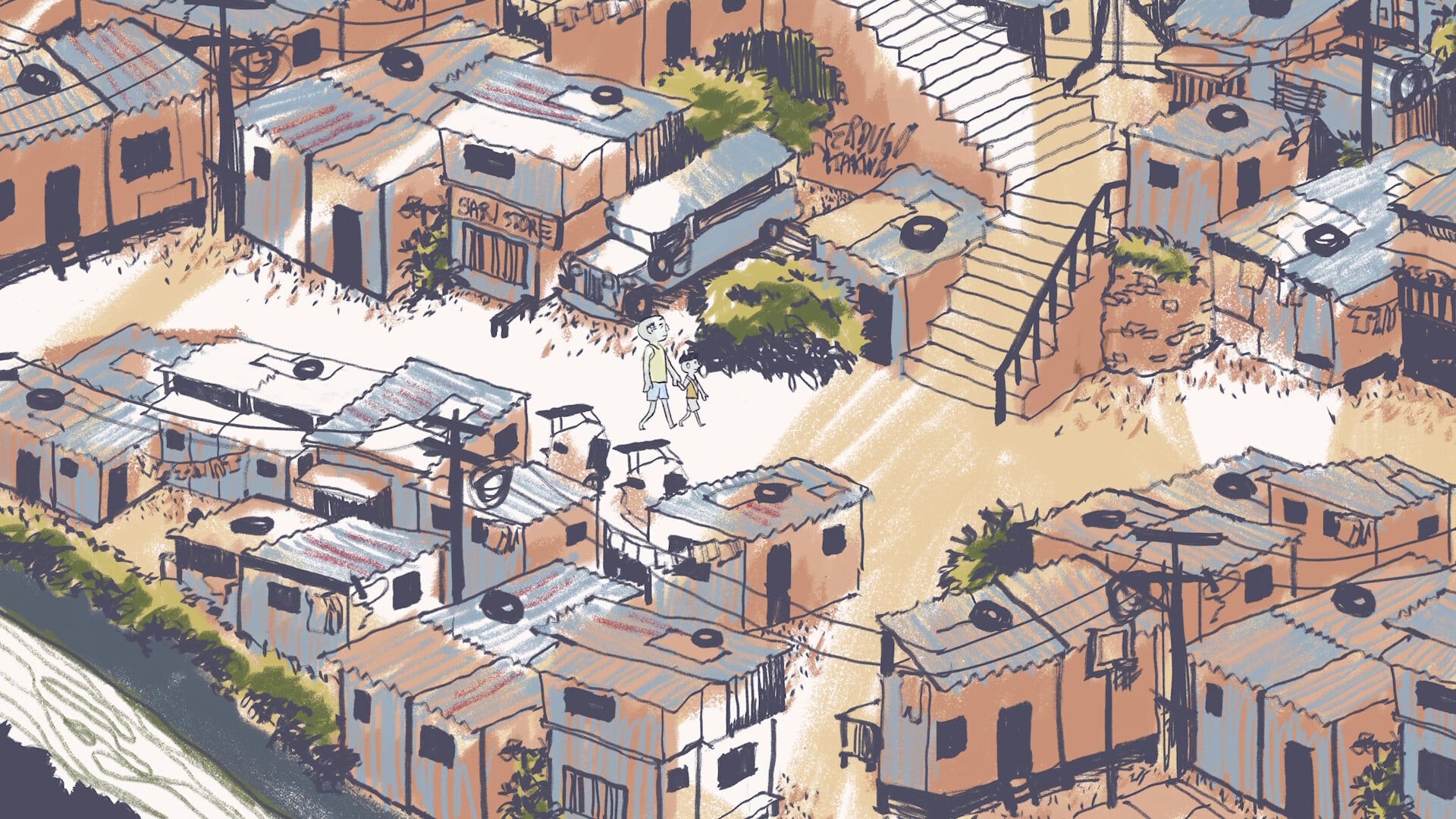 祖父と過ごした、ある午後の遠い記憶。学校に持っていく花を摘むために、古い街並みから高層ビルがそびえ立つビジネス街へと歩みを進める二人。活気ある街の喧騒と、その隣に静まり返る富裕層のための墓地。幼い心に初めて芽生えた階級意識と、今の自分を形作る原風景を、温かなアニメーションで繊細に描き出した9分間の瞑想。